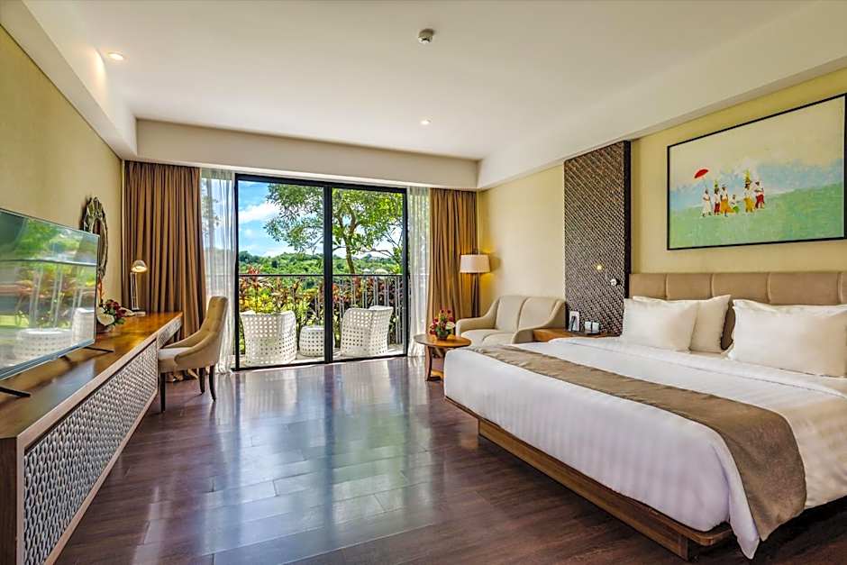 This air-conditioned twin/double room has a private balcony with a seating area overlooking the garden and golf field, a personal safe, ironing facilities, and a flat-screen cable TV. Private bathroom comes with a shower, bathtub and slippers.